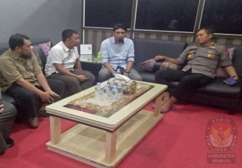 Rombongan Komisioner KPU Mamuju; Ketua KPU Mamuju, Hamdan Dangkang, Koordiv Parmas dan SDM, Ahmad Amran Nur serta Koordiv Teknis, Muhammad Rivai saat berbincang dengan Kapolresta Mamuju, Kombes Pol Minarto