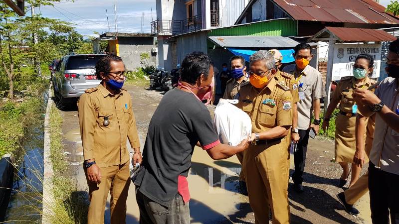 Gubernur Ali Baal Masdar (ABM) Saat Memberikan Bantuan Sembako Kepada Salah Seorang Warga