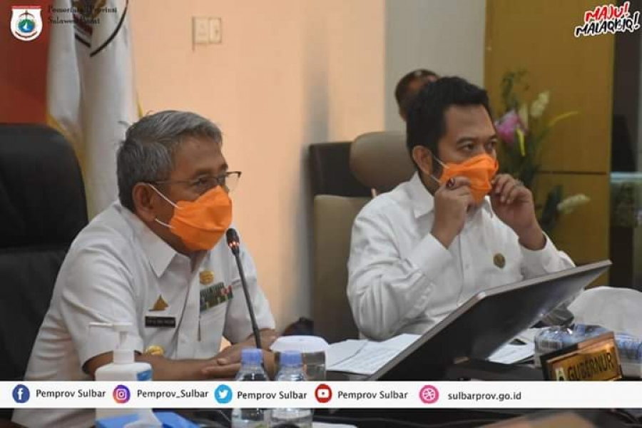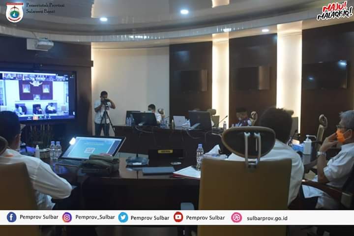 Jalurnusantara.com Mamuju- Melalui Video Conference (VC) Gubernur Sulbar Ali Baal Masdar, didampingi Kepala Dinas Sosial Sulbar, Bau Akram Da’i, mengikuti rapat koordinasi Bantuan Sosial (Bansos) tunai, bersama Menteri Sosial Republik Indonesia (Mensos RI) Juliari P. Batubara, yang berlangsung di ruang Oval lantai 3 Kantor Gubernur Sulbar. Rabu 15 April 2020.