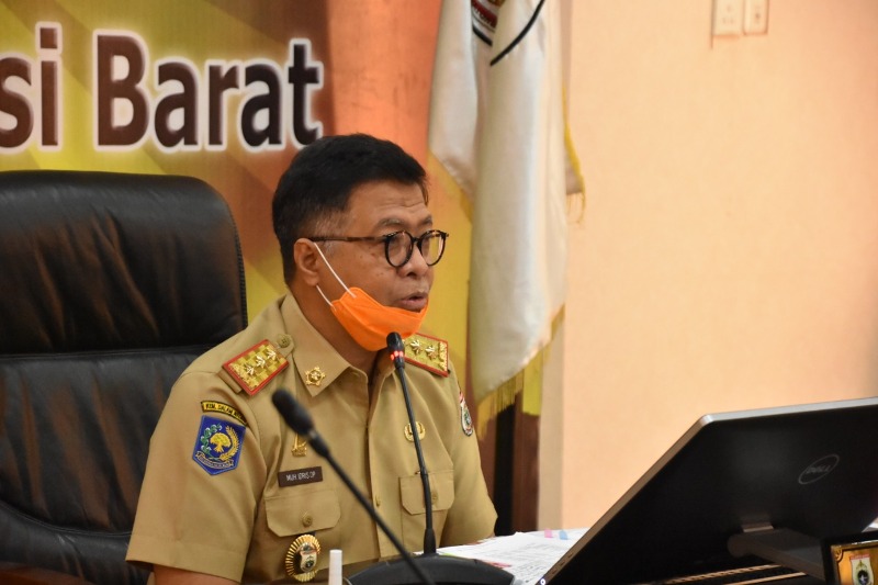 Sekprov Sulbar, Muhammad Idris, saat rapat koordinasi terbatas bersama Forkopimda dan para bupati melalui video conference.