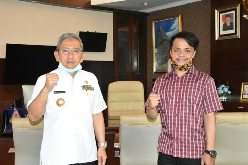 Gubernur Sulbar Ali Baal Masdar Berbincang Dengan Muhammad Junaid, warga Sulbar yang lulus program S2 ke Rusia.