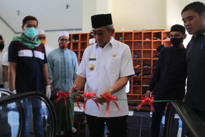 Gubernur Provinsi Sulawesi Barat, Ali Baal Masdar (ABM), Memotong Pitas Sebagai Tanda eskalator di Masjid Suada Diresmikan.