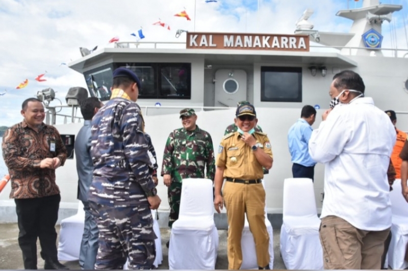 Kapal Angkatan Laut (KAL) Manakarra, Kapal Perang milik TNI Angkatan Laut tersebut diresmikan ditandai dengan tradisi pemecahan Kendi oleh Gubernur Sulawesi Barat, Ali Baal Masdar.