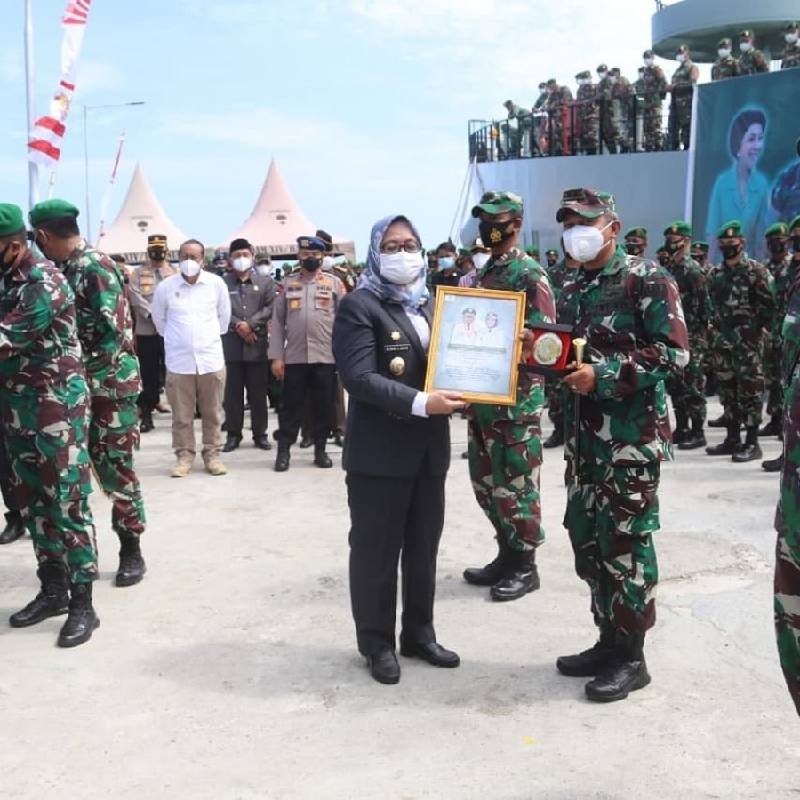 Jalurnusantara.com- Mamuju- Wakil Gubernur Sulbar Enny Anggraeni Anwar menghadiri Upacara Pelepasan Satuan Tugas (Satgas) Penanggulangan Bencana Alam TNI-AD di Dermaga Lanal Mamuju, Sabtu, 13 Maret 2021.