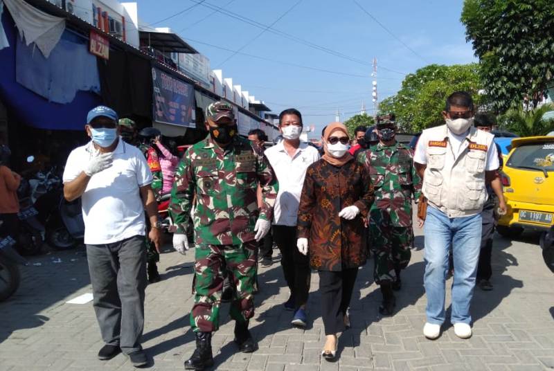 Bupati Bamuju Sitti Sutinah Suhardi, dampingi Dandim 1418 Mamuju Kolonel inf.Tri Aji Sartono, Sekda Mamuju H. Suaib, dan tiga orang anggota DPRD mamuju, Syamsuddin Hatta, Masram Jaya, dan Muhammad Reza saat Sidak di Pasar