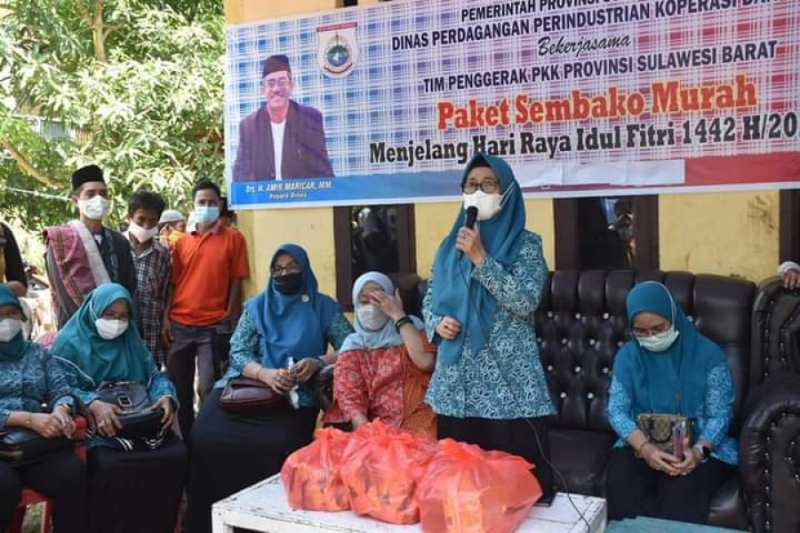 Terkait penyerahan bantuan, Kepala Bidang Perdagangan Dinas Perdagangan, Perindustrian, Koperasi, dan UKM Sulbar Arnida, yang turut membantu menyerahkan bantuan paket tersebut menjelaskan, kegiatan itu dilaksanakan atas nama Pemprov Sulbar bekerjasama dengan TP. PKK Sulbar.