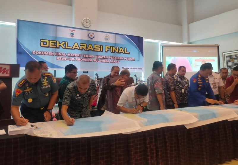 Jalurnusantara.com- Mamuju- Deklarasi dokumen final materi teknis Rencana Zonasi Wilayah Pesisir dan Pulau-Pulau Kecil (RZWP3K), di Grand Maleo Hotel Mamuju, Kamis 12 Januari 2023.