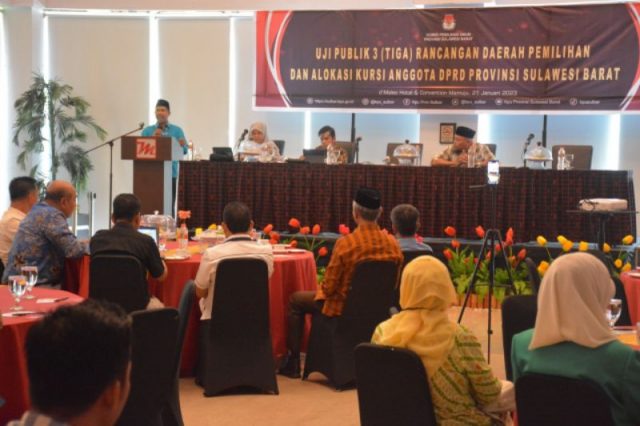 Jalurnusantara.com- Mamuju- Komisi Pemilihan Umum (KPU) Provinsi Sulawesi Barat selesai menggelar uji publik rancangan Daerah Pemilihan dan Alokasi Kursi Anggota DPRD Provinsi Sulawesi Barat. Uji publik digelar di tiga kabupaten, Polewali Mandar, Pasangkayu dan terakhir di Kabupaten Mamuju, Sabtu (21/01/2023).