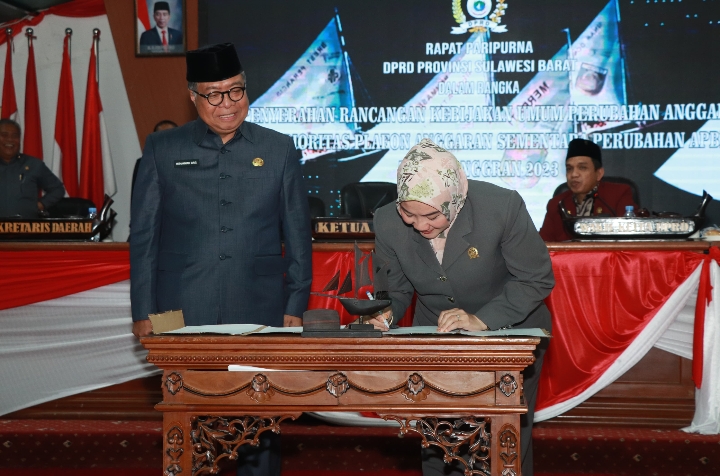 Parat Peripurna ini, DPRD Sulbar dan Pemrov Sulbar telah sepakat dan menanda tangani Nota kesepahaman bersama KUA PPAS yang merupakan pedoman dan landasan dalam melakukan penyesuaian nota keuangan APBD 2024. (Cst)